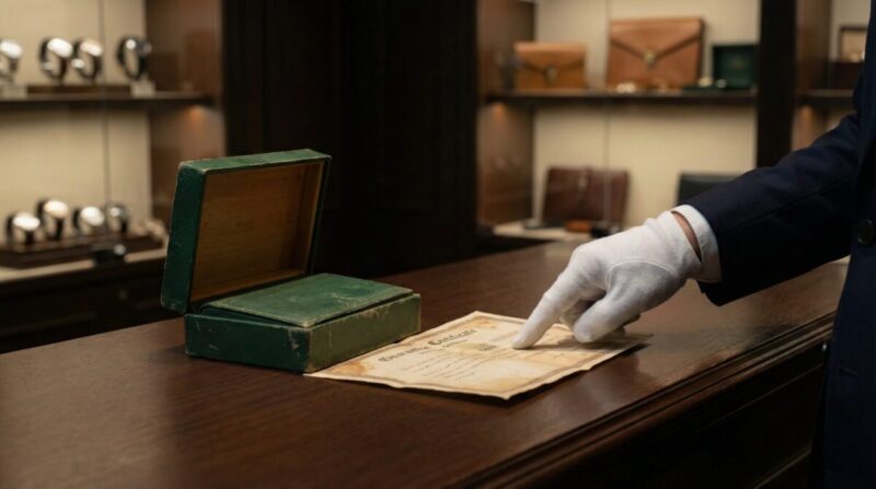 ロレックスの保証書は再発行が一切できないため、その個体が本物であることの証明に加え、コレクターズアイテムとしての価値を大きく左右するからです。特にヴィンテージモデルの場合、保証書の有無で査定額に10万円以上の差がつくことも珍しくありません。
