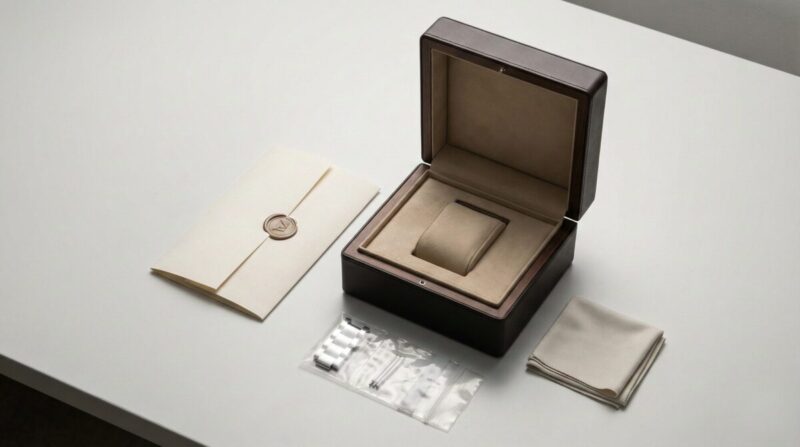 時計本体が傷だらけの場合、付属品(特に保証書と余りコマ)の存在が命綱になります。