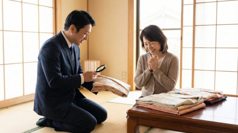 「リサイクルショップ」ではなく「専門店」を選ぶのがポイントです。近所の総合リサイクルショップでは、着物の価値がわかる査定員が不在で、重量(キロ単位)で数十円にしかならないことが多いですが、専門店なら作家物や産地物を適正に評価してくれます。