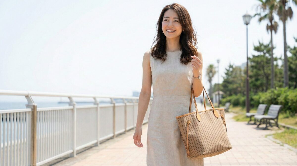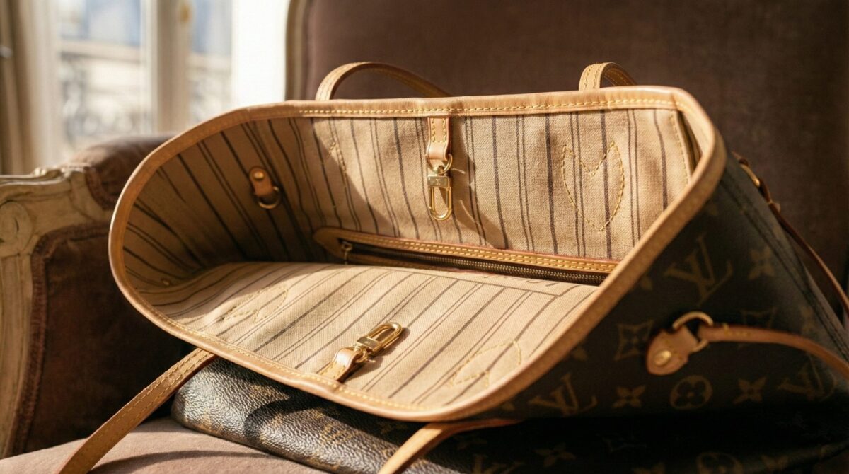 ルイ・ヴィトンのアイコン的バッグであるネヴァーフル。街中で見かけるのはモノグラムやダミエのキャンバス地が表の状態ですが、実は公式でも「リバーシブルで楽しめる」という設計思想が含まれています。